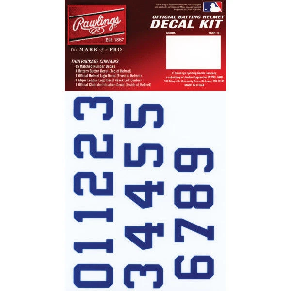 Give your team the winning edge and confidence of the big league players by personalizing their batting helmets with one of these MLB decal kits. These decal kits for batting helmets have a removable adhesive and includes MLB team home logo, back MLB silhouette logo, and number set for additional personalization.