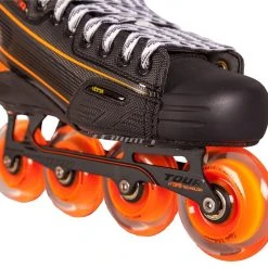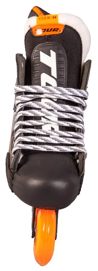 The Code 2 inline hockey skates offer a lightweight advanced thermolayer composition combining excellent support and rigidity throughout the boot. The new Knetik Tendon guard provides the best range of motion on the market ensuring an aggressive snap back during full stride extension. This skate also features the new ARC removable tongue which eliminates negative space within the boot and provides excellent anti-lacebite protection. Patented DPS technology lowers the center of gravity for better control and speed while Labeda™ Millenium wheels and Gold 9 bearings provide unbeatable grip and speed.